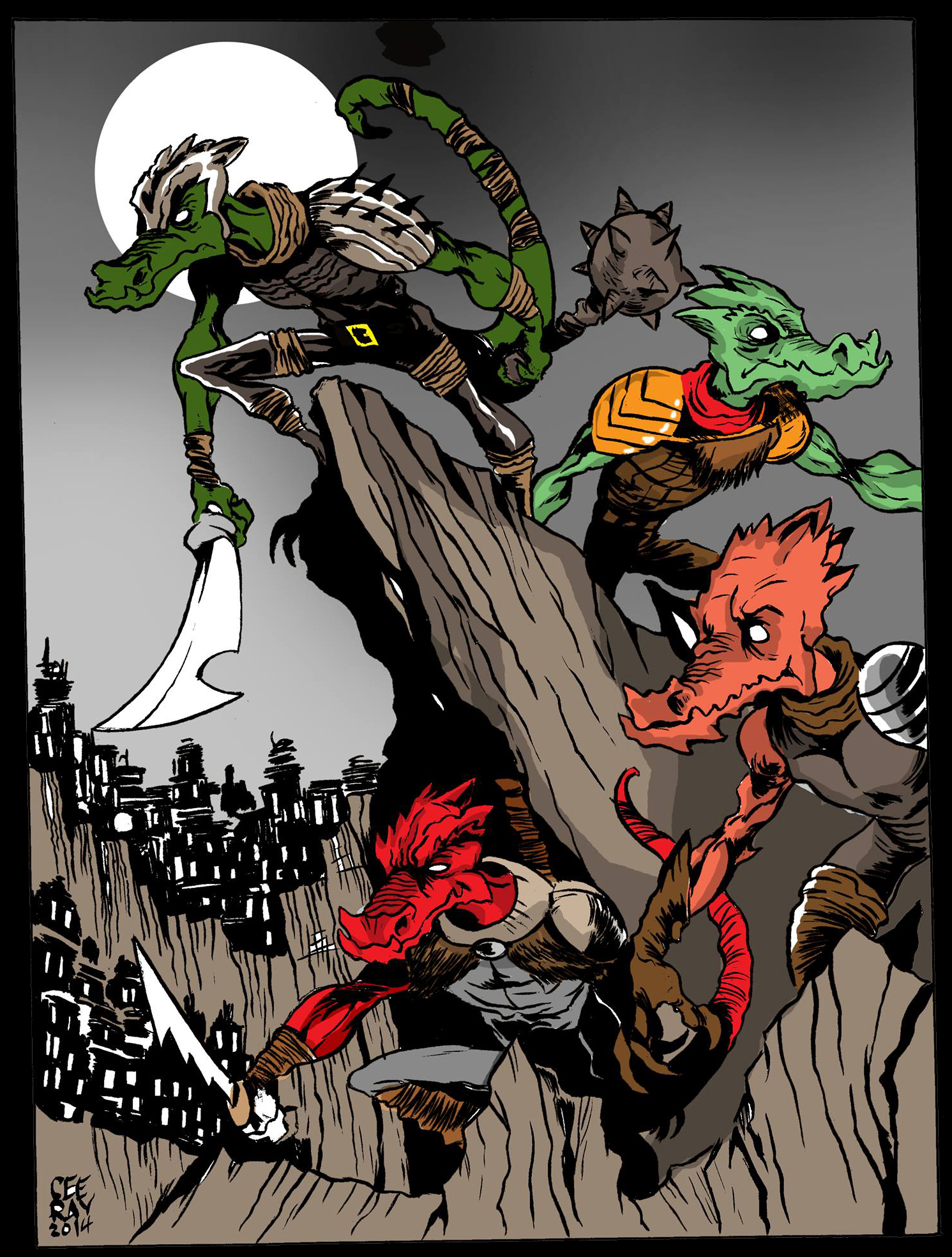 Why do we all hate kobolds so much? It’s just a matter of course that in every fantasy rpg you play your first level adventurers will go out and murder a couple dozen kobolds, collect their loot, a bit of experience and move on to bigger badder things. Ever wonder what the kobolds thought about all this? Ever think maybe all those kobolds aren’t the bad guys we make them out to be? Well No Country For Old Kobolds is built to explore the world through their eyes! Sometimes this view of the world can be comedic, sometimes heartbreaking, sometimes heroic. No Country For Old Kobolds is a tabletop pen and paper rpg based on Dungeon World by Sage LaTorra and Adam Koebel and World of Dungeons by John Harper. While it maintains some of the core mechanics of these two games it has been heavily modified to better model the world of kobolds. You'll play champion kobolds - the best of the best - protecting your village from the kingdoms that you created during game setup. As your kobolds die they pass traits down to their children, each generation getting stronger and more capable! You'll fight for your village in a game of survival, heroism and black comedy.